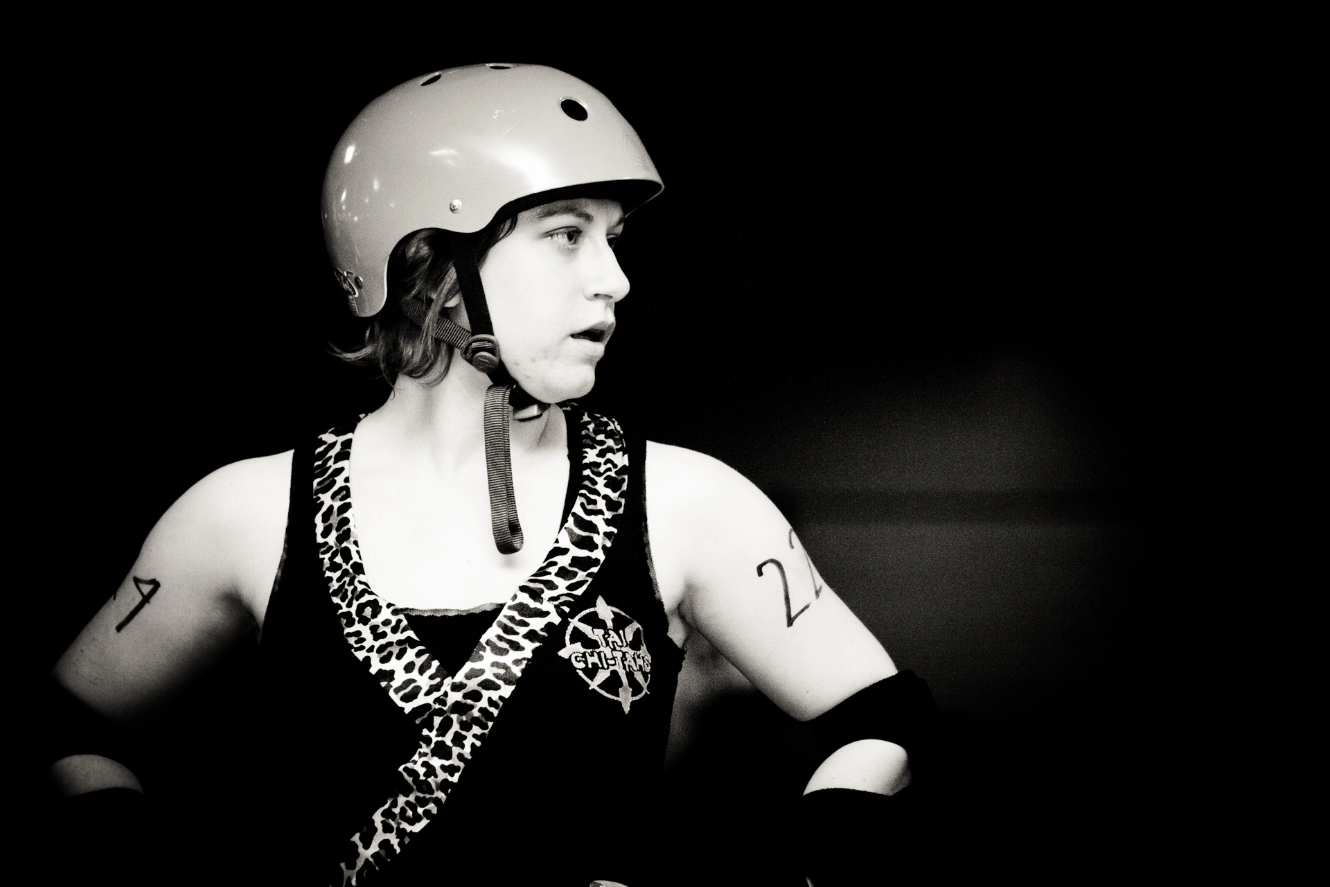 Photographing roller derby presents some of the most demanding low-light challenges in sports photography. Most venues are converted warehouses or community centers with poor lighting – typically a mix of fluorescent, sodium vapor, or LED fixtures creating uneven illumination with hot spots under lights and deep shadows where much of the action occurs. Color temperature varies wildly throughout the space, and the reflective track surfaces create harsh highlights on helmets and gear while darker uniforms disappear into shadows.